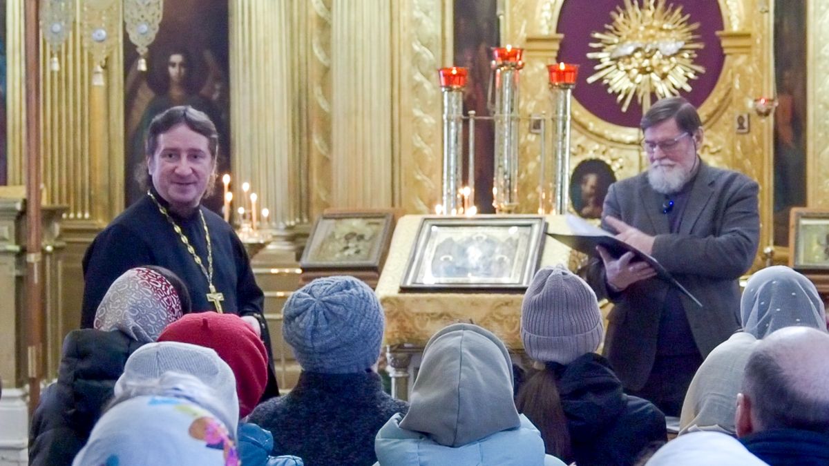 Настоятель храма иеромонах Лазарь (Беломоин) приветствовал гостей, подчеркнув важность преемства прошлого и настоящего, и поблагодарил краеведов, пробуждающих интерес к отечественной истории.