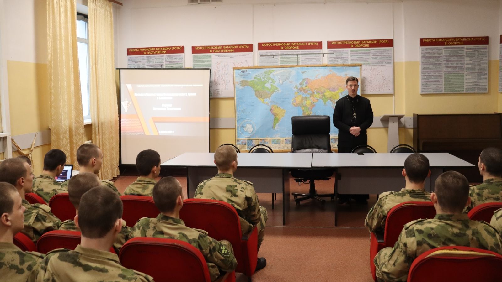 4 ноября в 5-ом полку Отдельной дивизии оперативного назначения имени Ф. Э. Дзержинского ответственный за взаимодействие с Вооруженными Силами и правоохранительными органами в Балашихинском благочинии священник Артемий Кравченко провёл духовную беседу с военнослужащими по призыву.