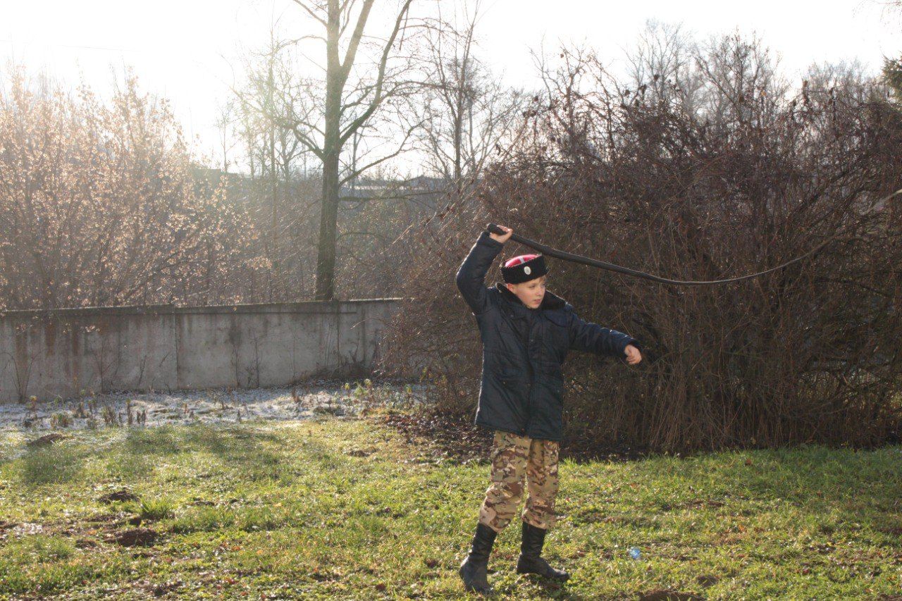 На приходской территории были организованы мастер-классы по владению шашкой и кнутом – арапником, стрельбе из лука, стрельбе из пневматической винтовки, выставка рарететного оружия, полевая кухня.