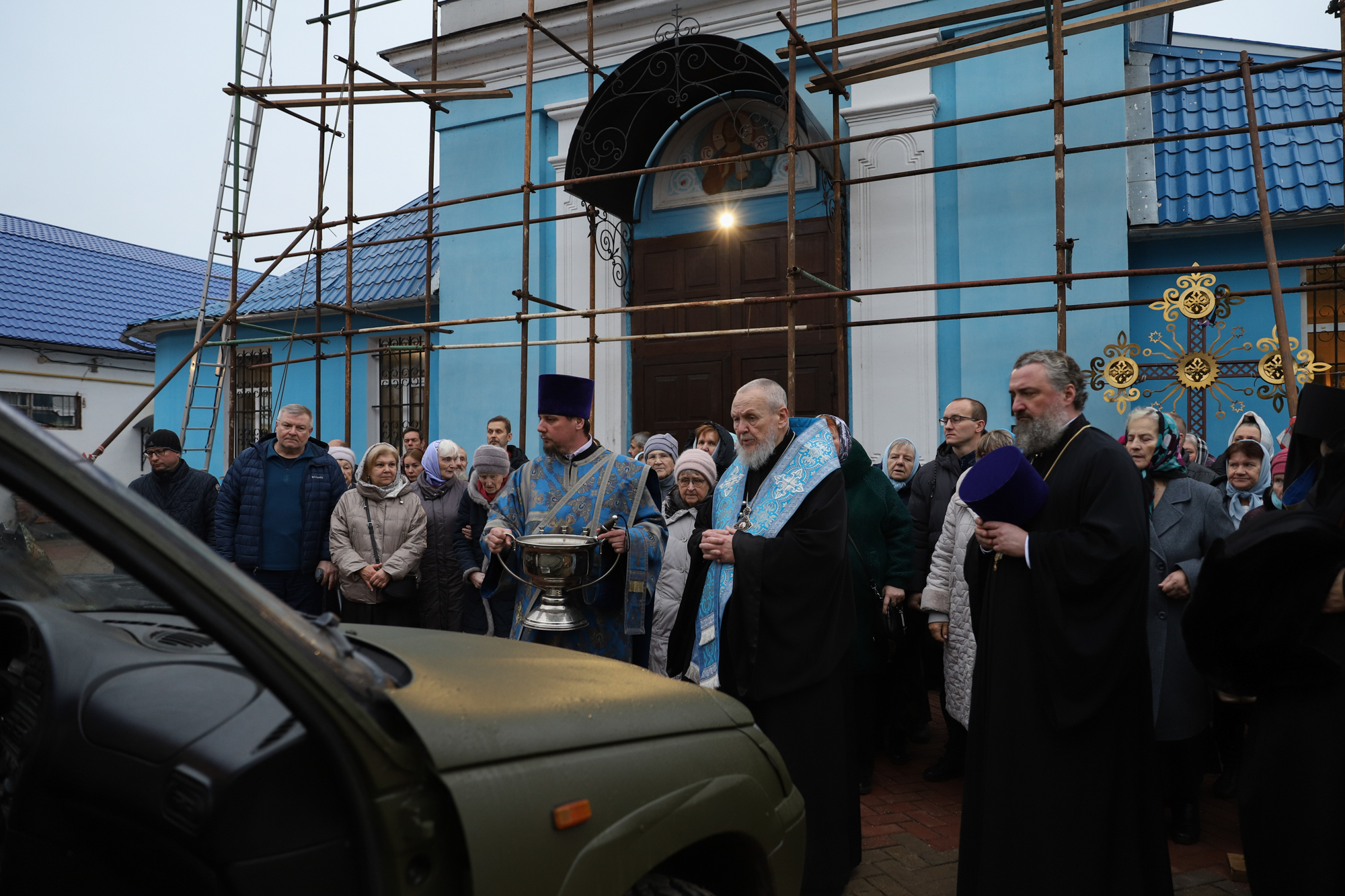В этот же день владыка Николай совершил освящение нового шпиля для приходской колокольни и благословил автомобили и спецтехнику, направляемые в зону проведения Специальной военной операции.