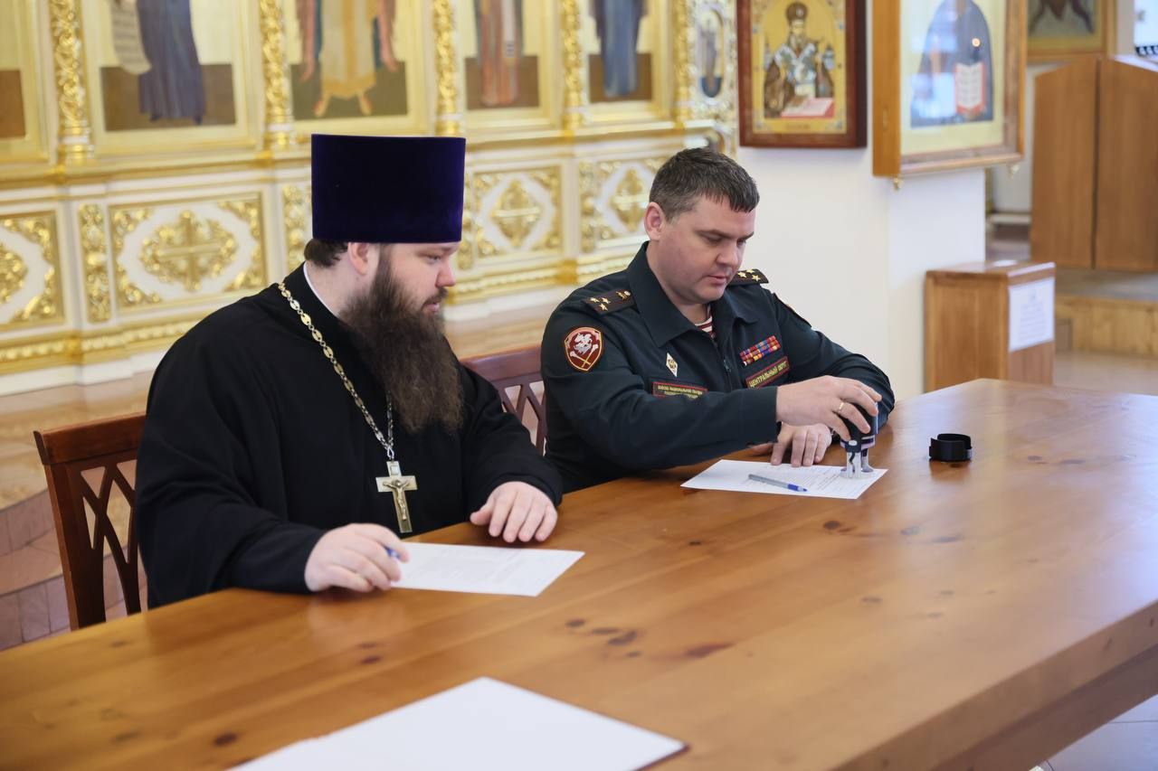 В начале встречи благочинный Павлово-Посадского церковного округа священник Александр Анохин совершил молебен о защитниках Отечества, после которого были подписаны планы совместных мероприятий упомянутых ведомств с Павлово-Посадским благочинием на 2026 год.