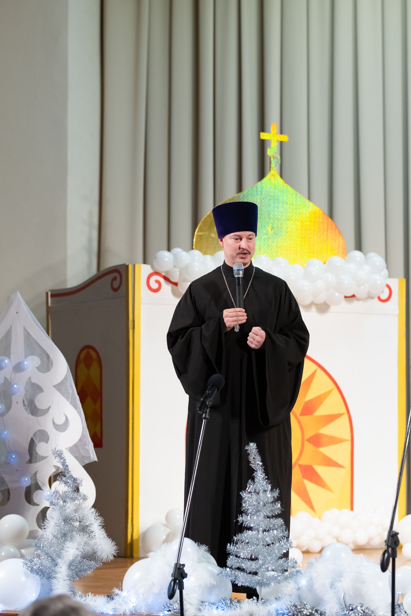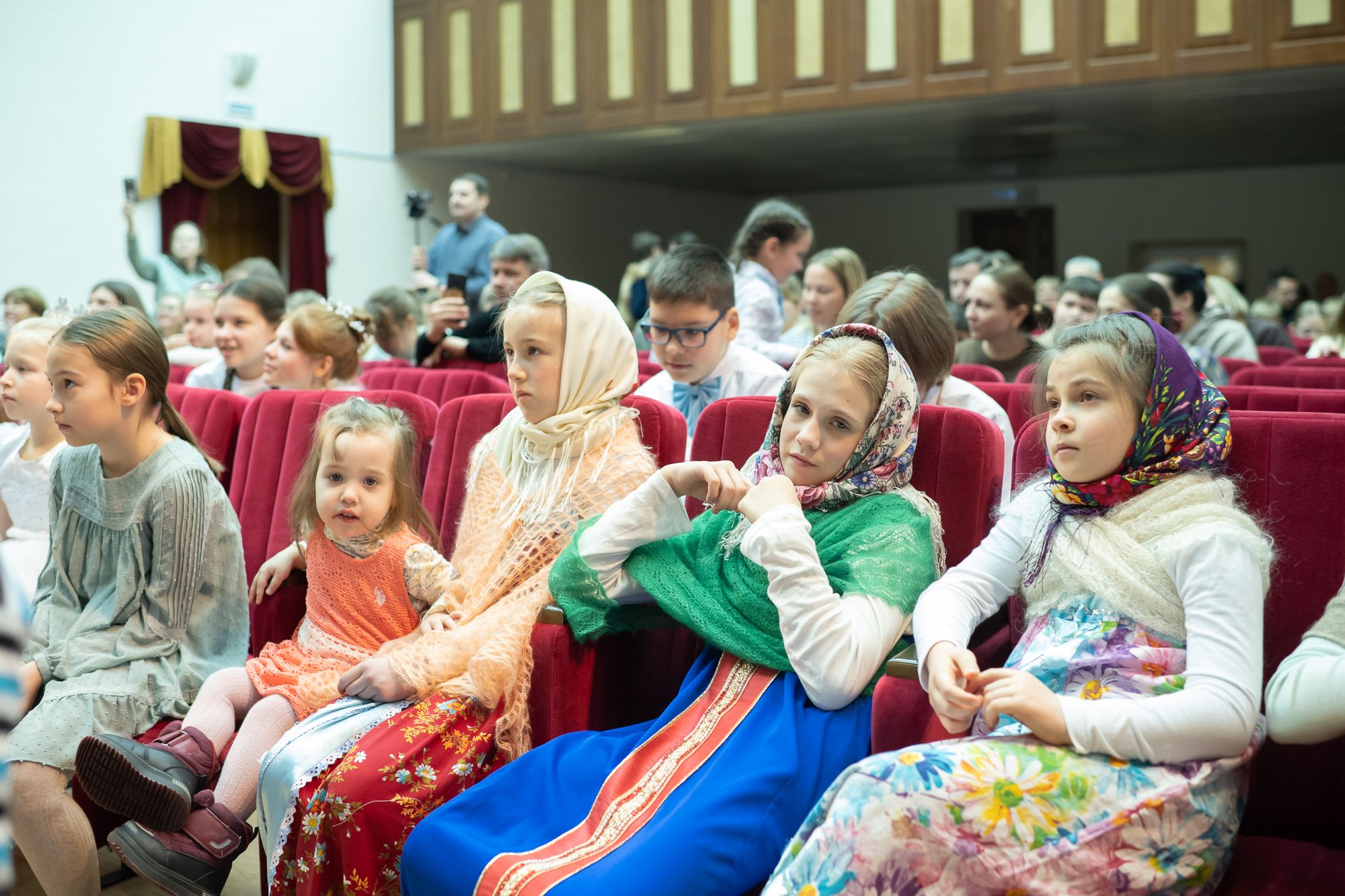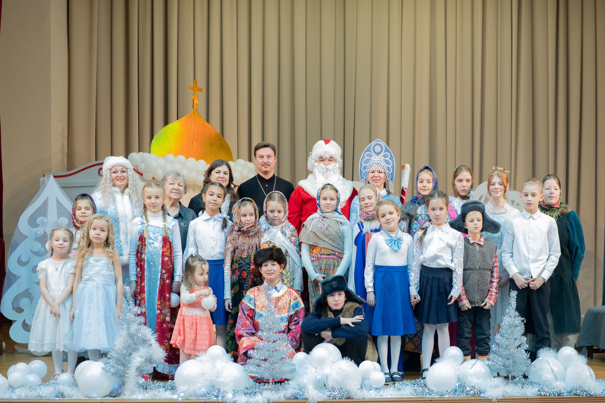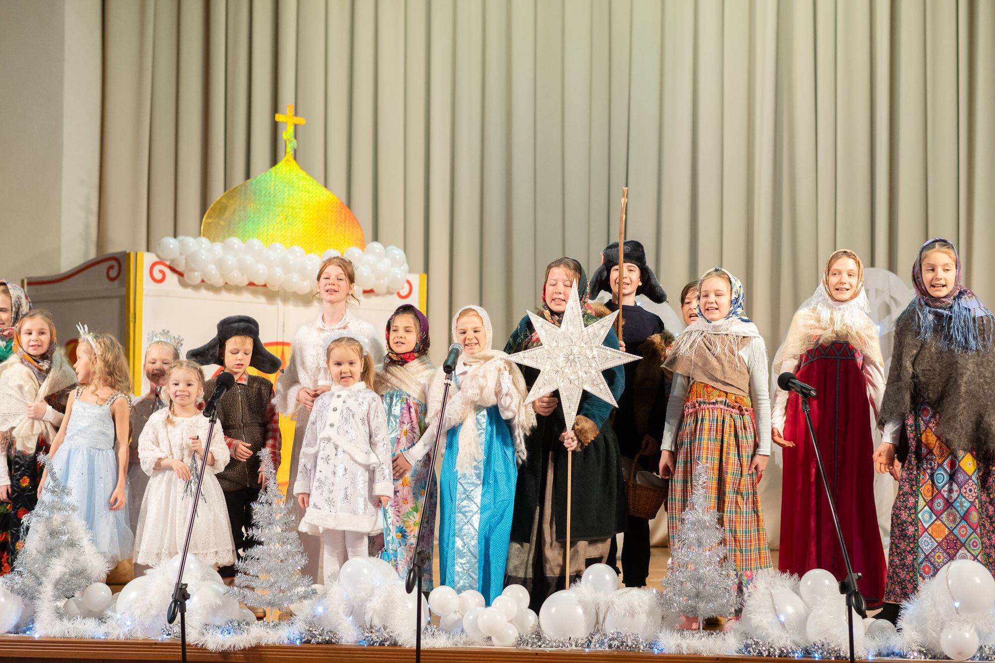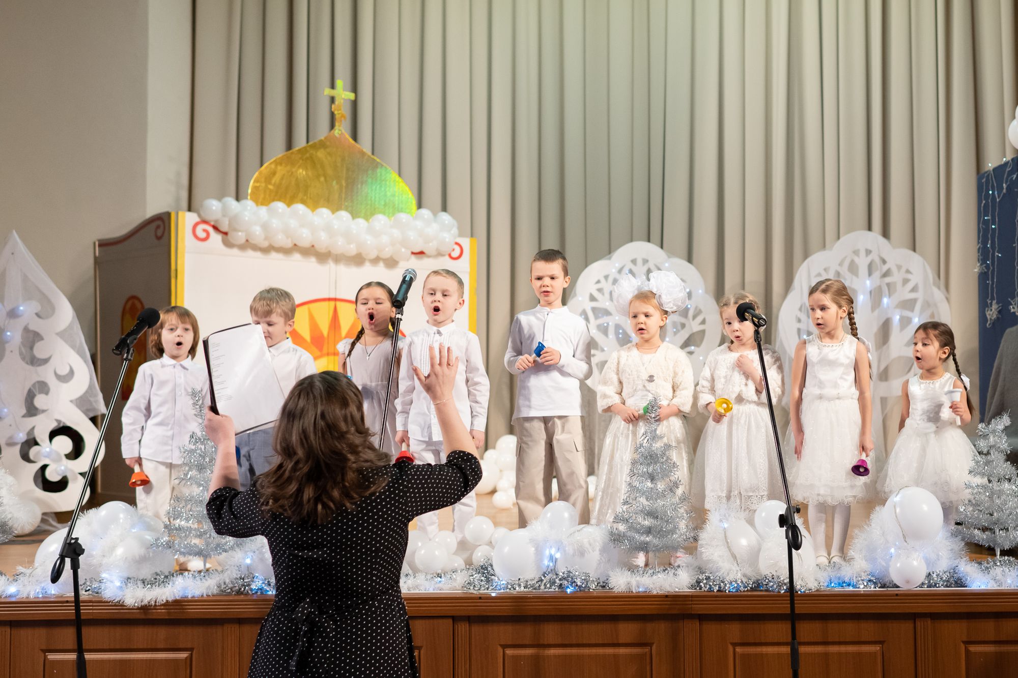 С песнями выступили дети из младшего и среднего хоров воскресной школы. Затем зрителей поздравил настоятель Неопалимовского храма священник Артемий Кравченко. Театральная студия воскресной школы представила тематический спектакль.