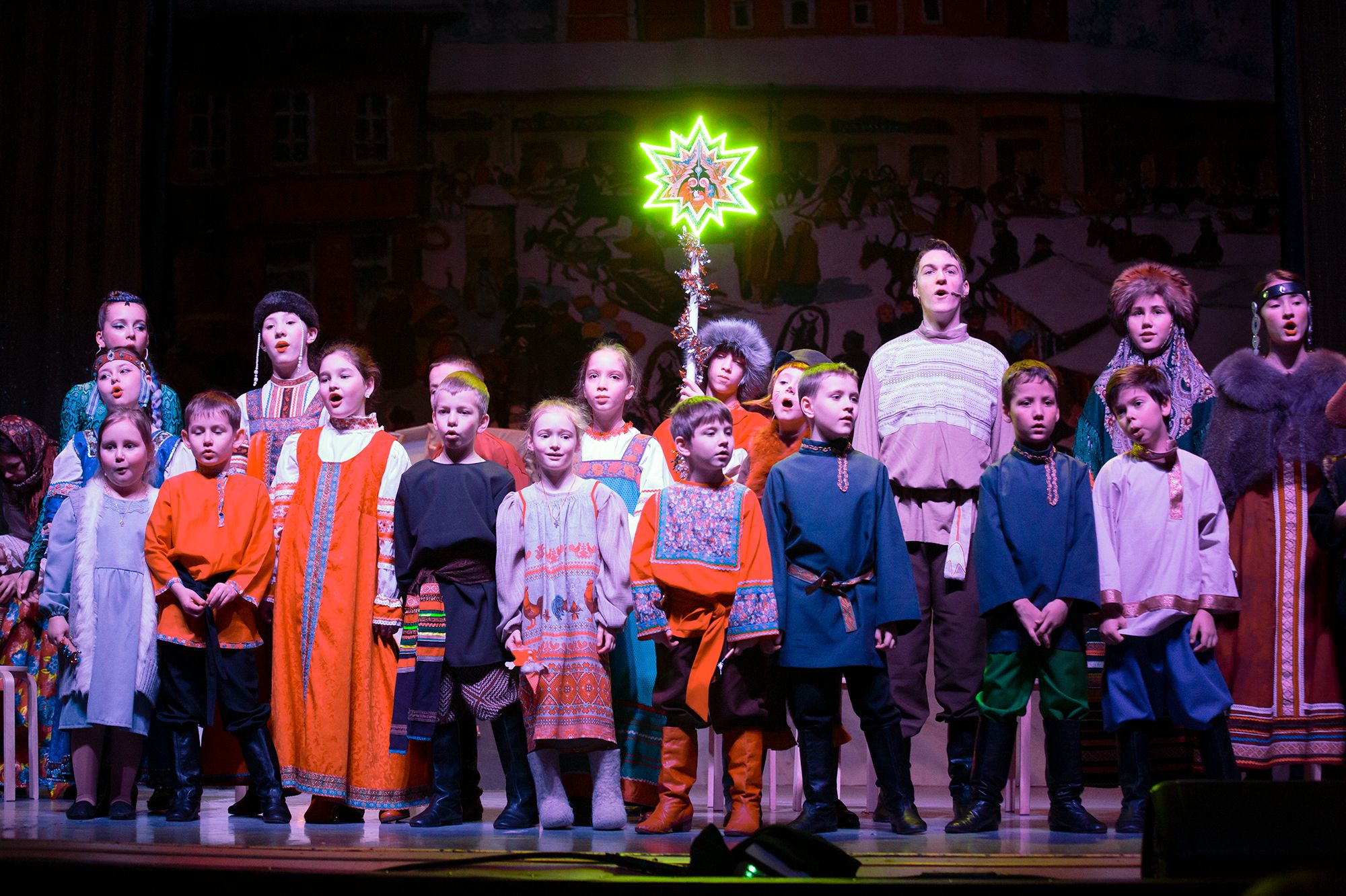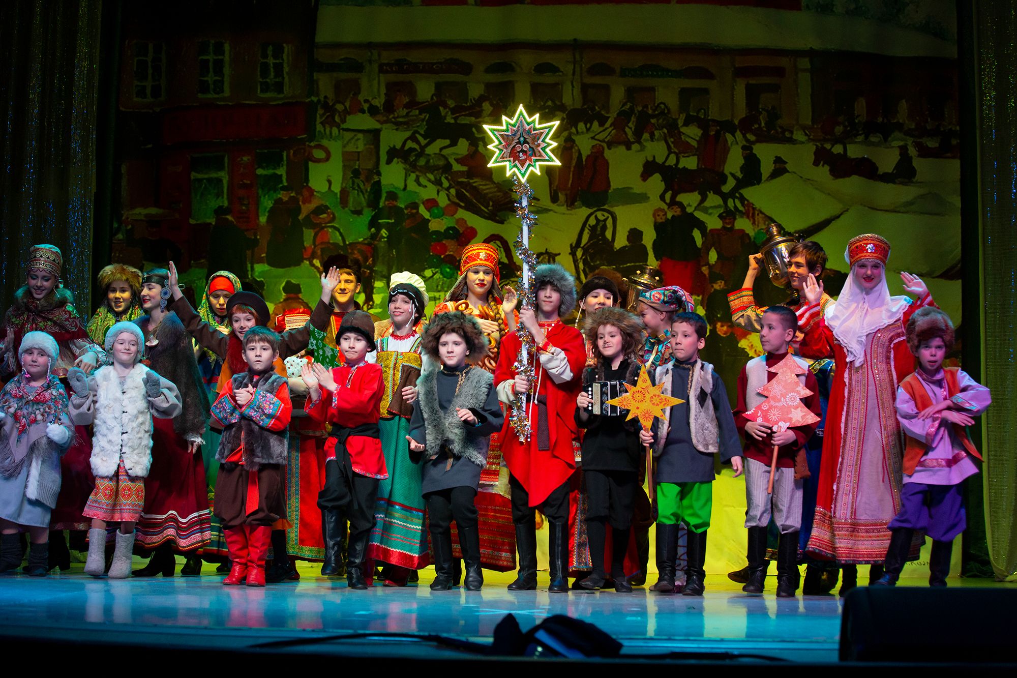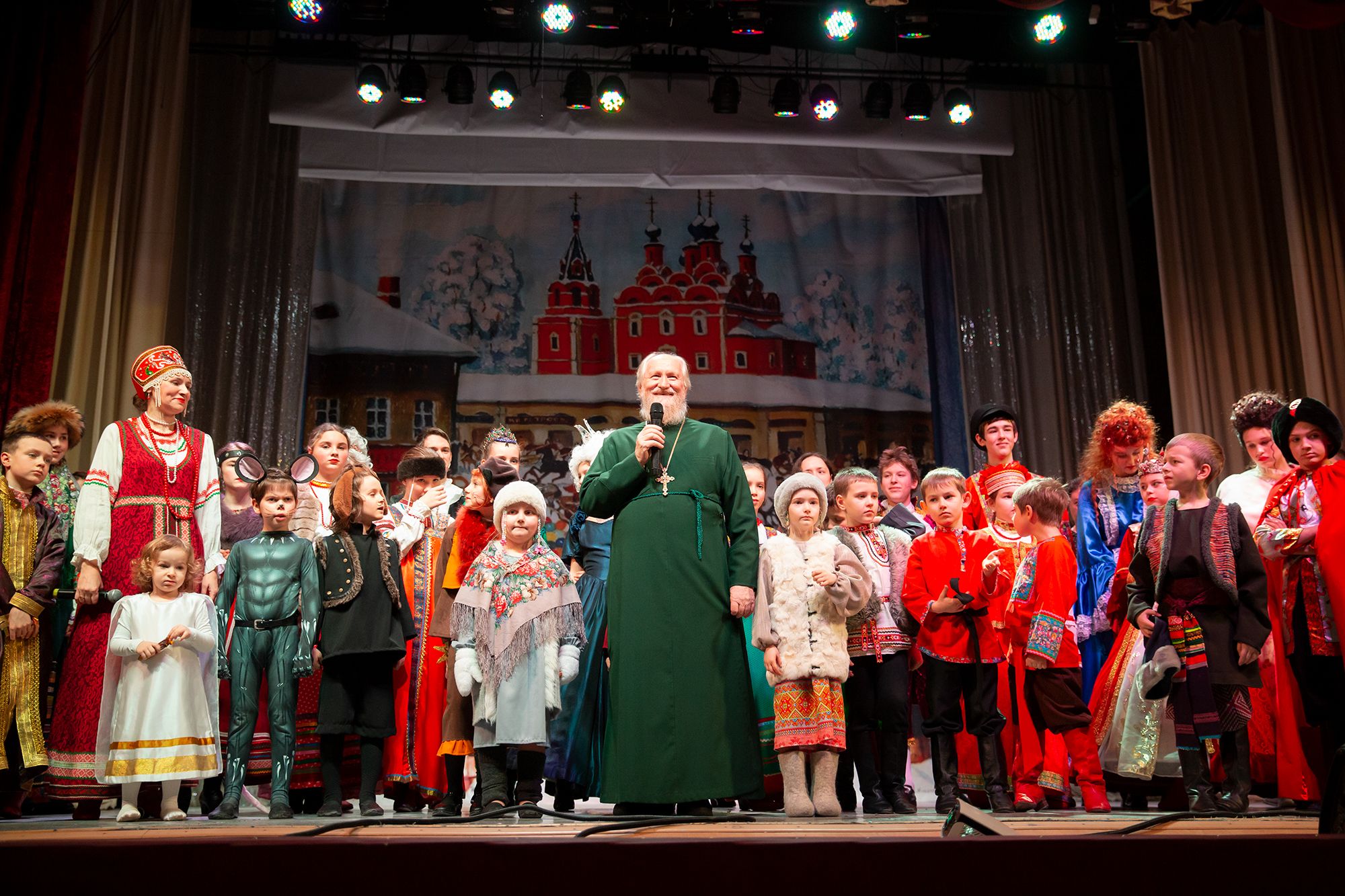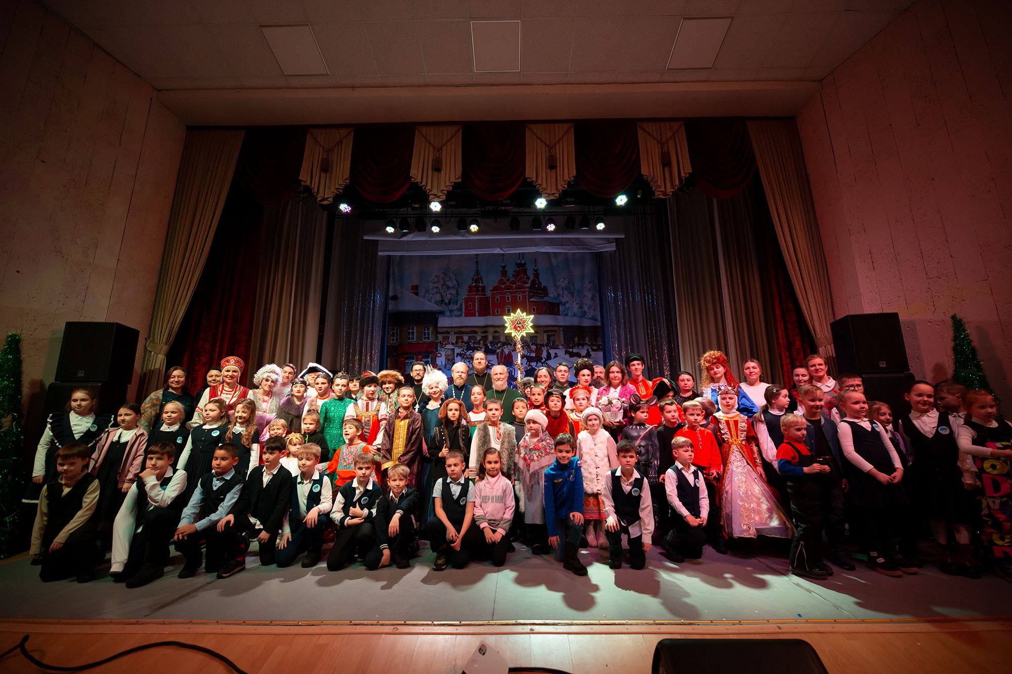 В спектакле участвовало 35 детей, большинство из которых воспитанники воскресных школ приходов блаженной Ксении Петербургской деревни Медвежьи Озёра и Преображения Господня в Звёздном городке.