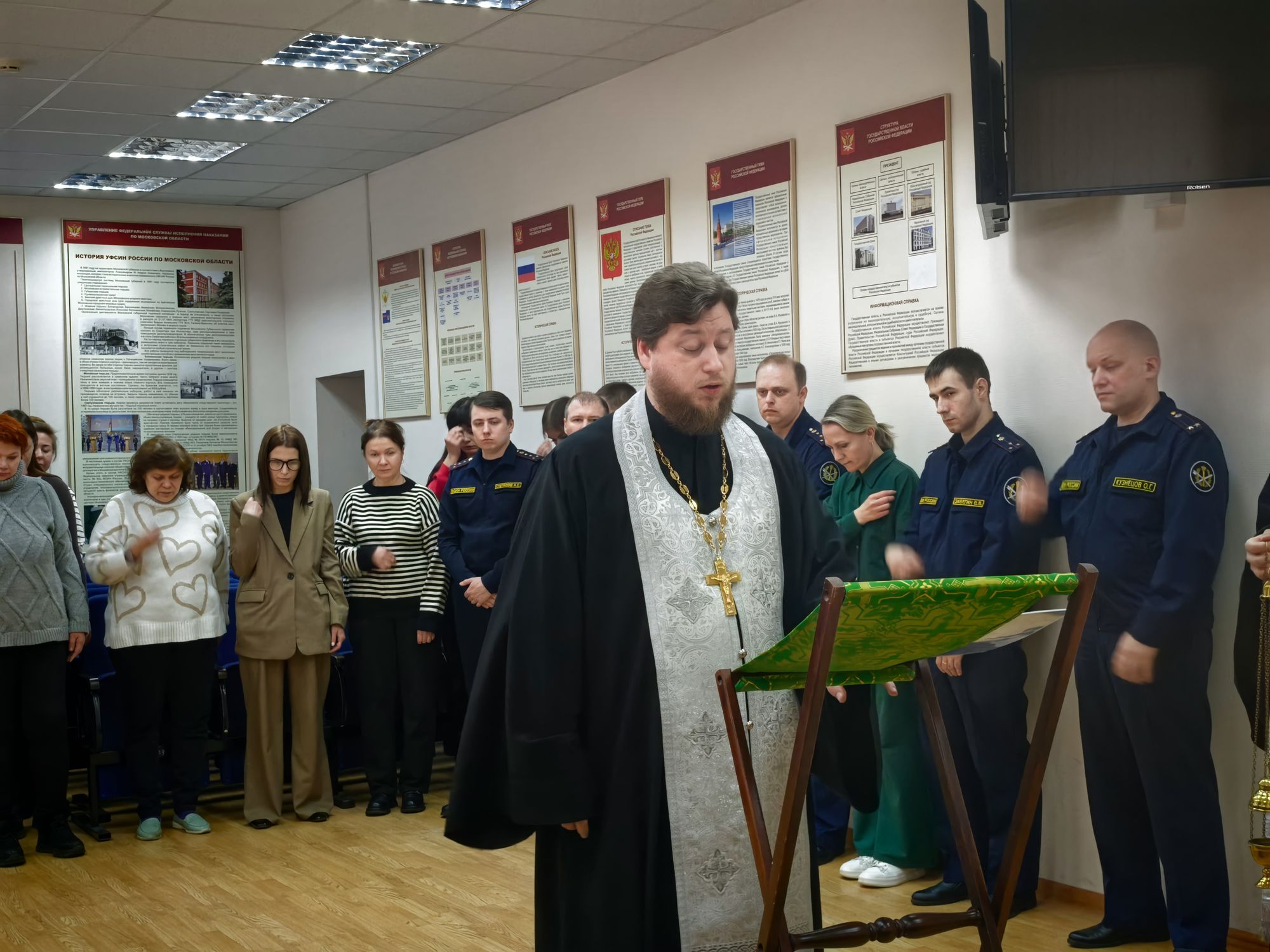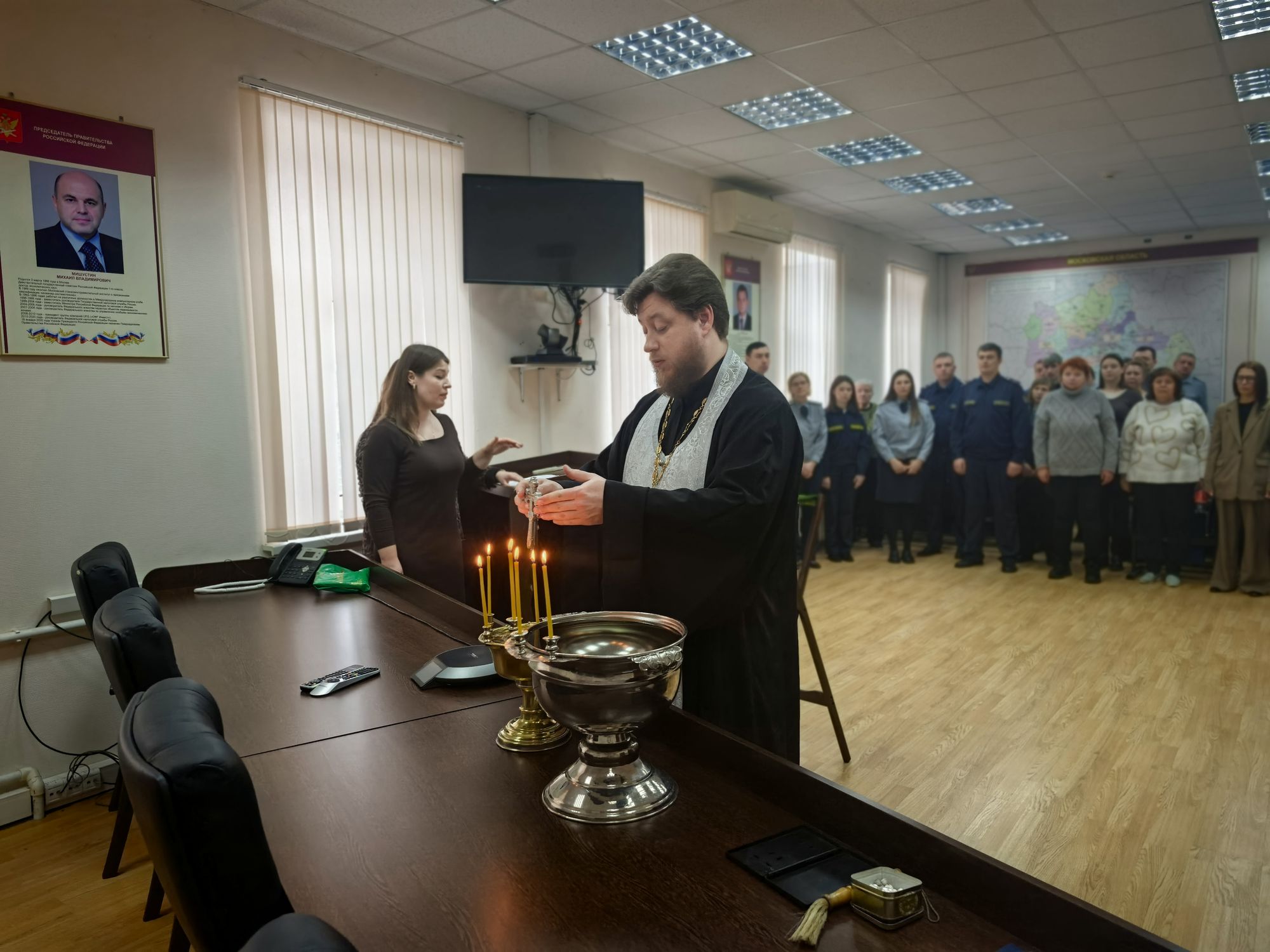 19 января, в день праздника Крещения Господня, председатель Межъепархиального отдела по тюремному служению Московской митрополии, помощник начальника ГУФСИН по организации работы с верующими священник Михаил Кузёмка посетил Главное управление ФСИН России по Московской области, где совершил чин великого освящения воды.
