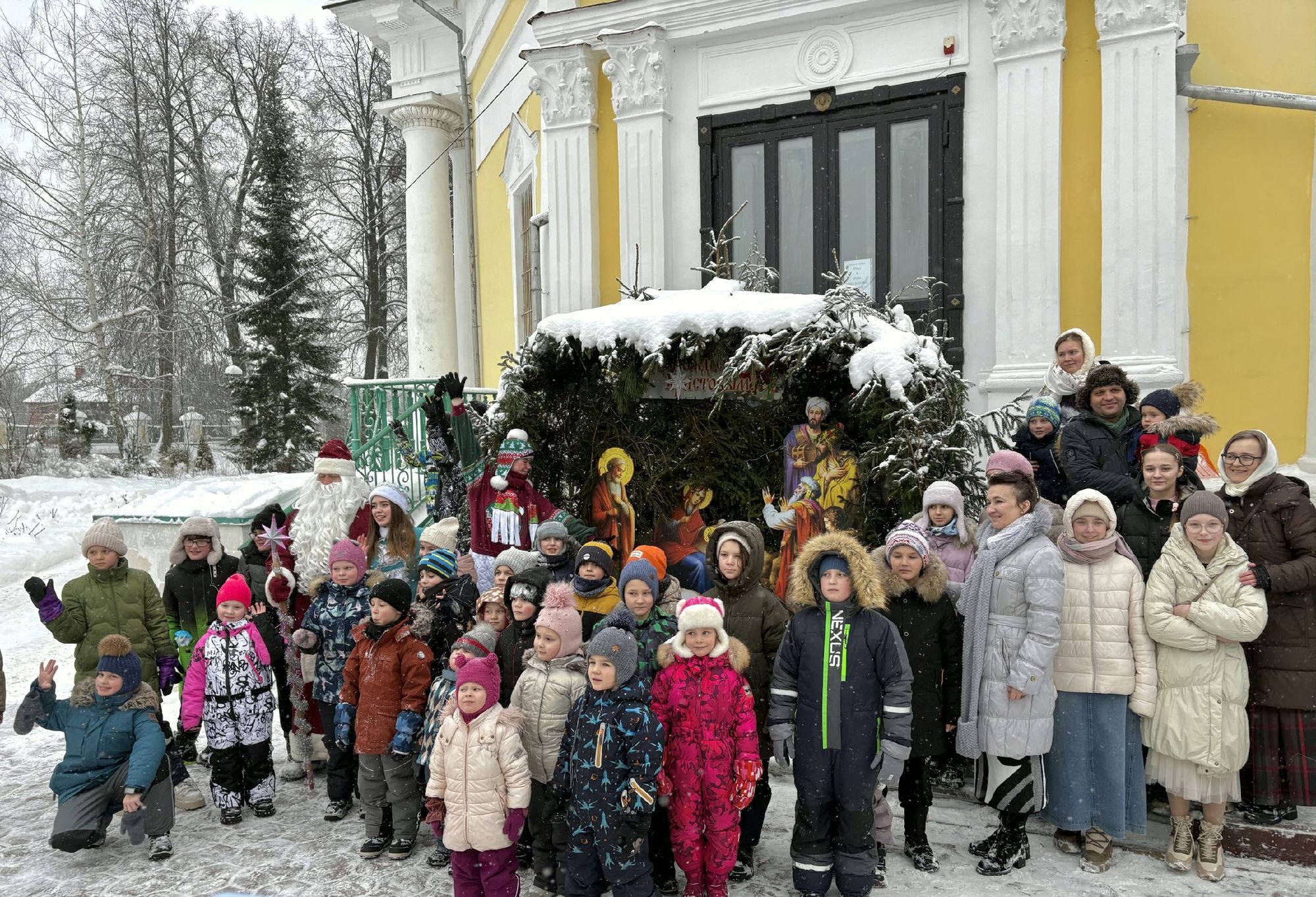 Воспитанники воскресной школы «Лествица» при Державном храме Наукограда с настоятелем священником Димитрием Третьяковым поздравили ребят во втором корпусе детского сада №18 «Росинка» города Фрязино.