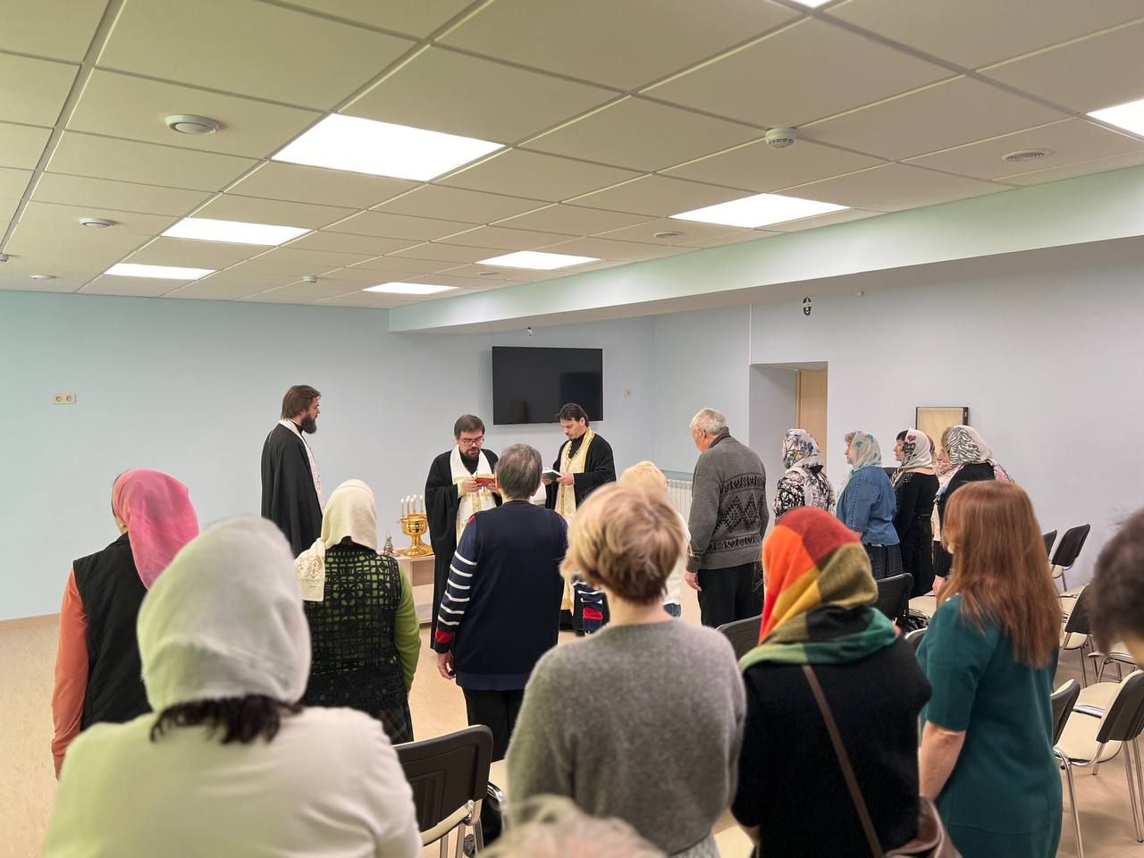 За богослужением молились директор центра Ольга Садилава и сотрудники учреждения.