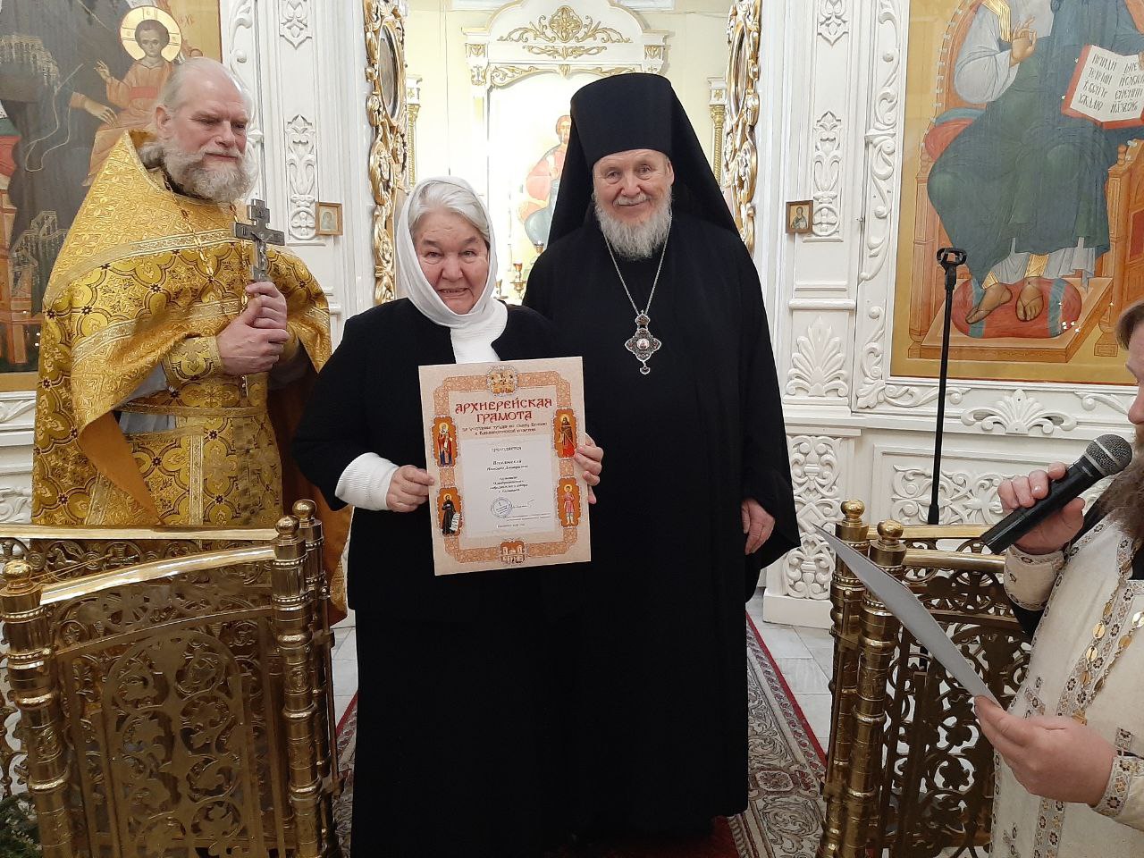 По окончании богослужения епископ Николай обратился к сослужившему духовенству и богомольцам с архипастырским словом и вручил сотрудникам прихода за многолетние труды во славу Церкви Христовой медали и архиерейские грамоты Балашихинской епархии.