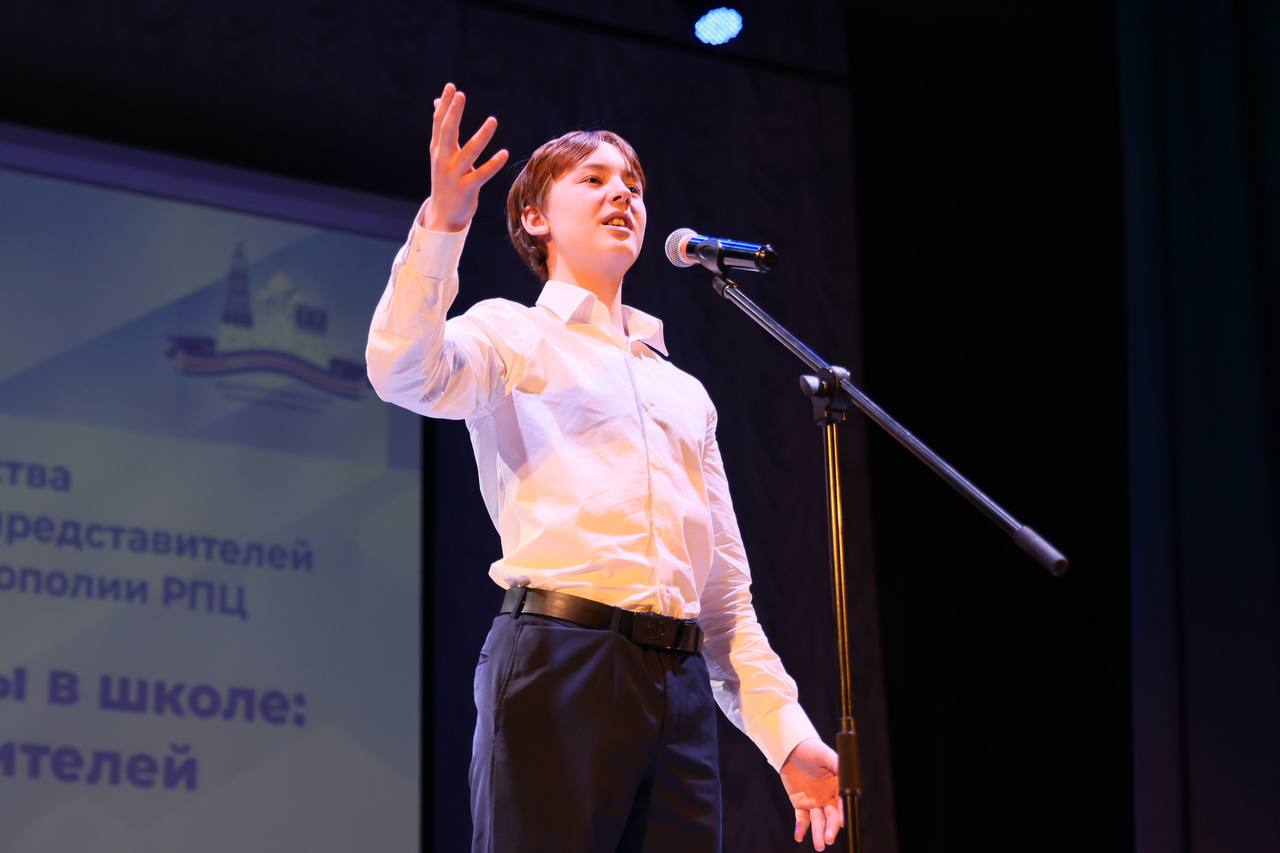 Победитель конкурса «Покровские литературные чтения», ученик средней школы № 11 Павлово-Посадского городского округа Илья Найдёнов прочёл стихотворение Фёдора Глинки «Иоанн Креститель в пустыне» и рассказал евангельский отрывок, раскрывающий духовный смысл произведения.