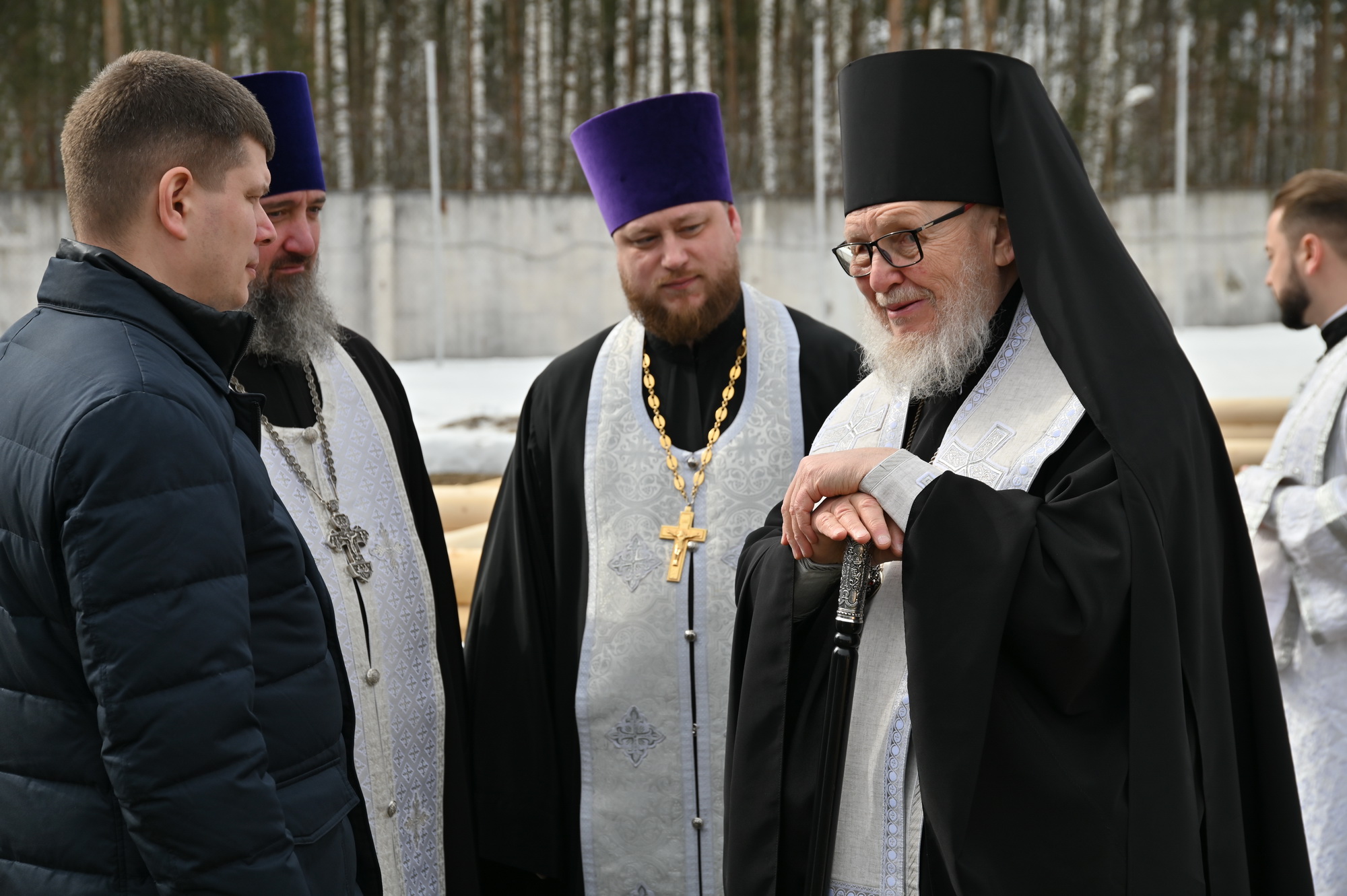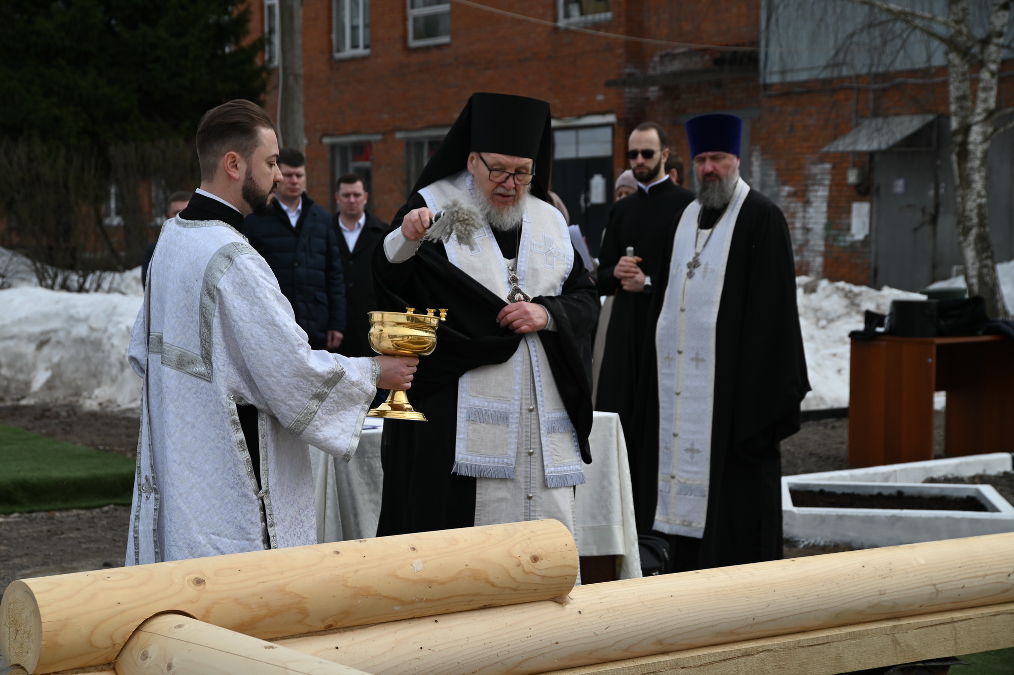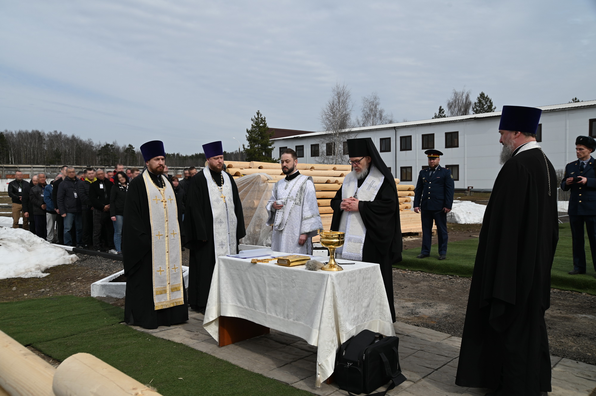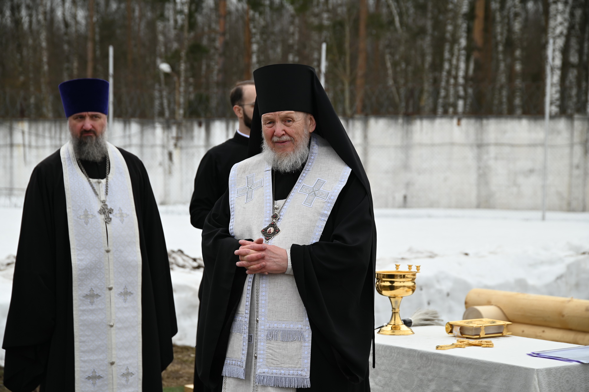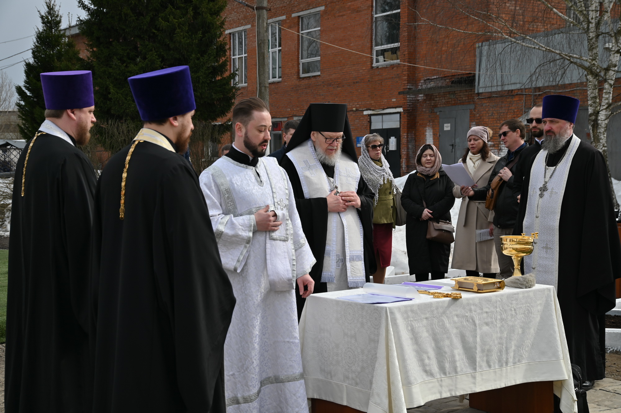 По окончании богослужения владыка Николай обратился к всем присутствующим с архипастырским словом и молитвенными пожеланиями помощи Божией руководству учреждения, благотворителям и всем, чьим трудом и старанием будет воздвигнут новый храм на территории учреждения.