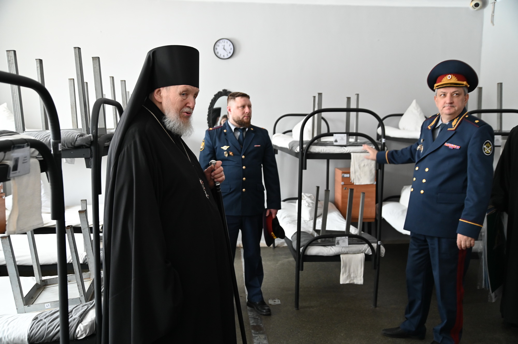 Затем в сопровождении руководства ГУФСИН епископ Николай ознакомился с условиями содержания осуждённых в учреждении, посетил действующий домовый храм, жилые комнаты, актовый зал, библиотеку.