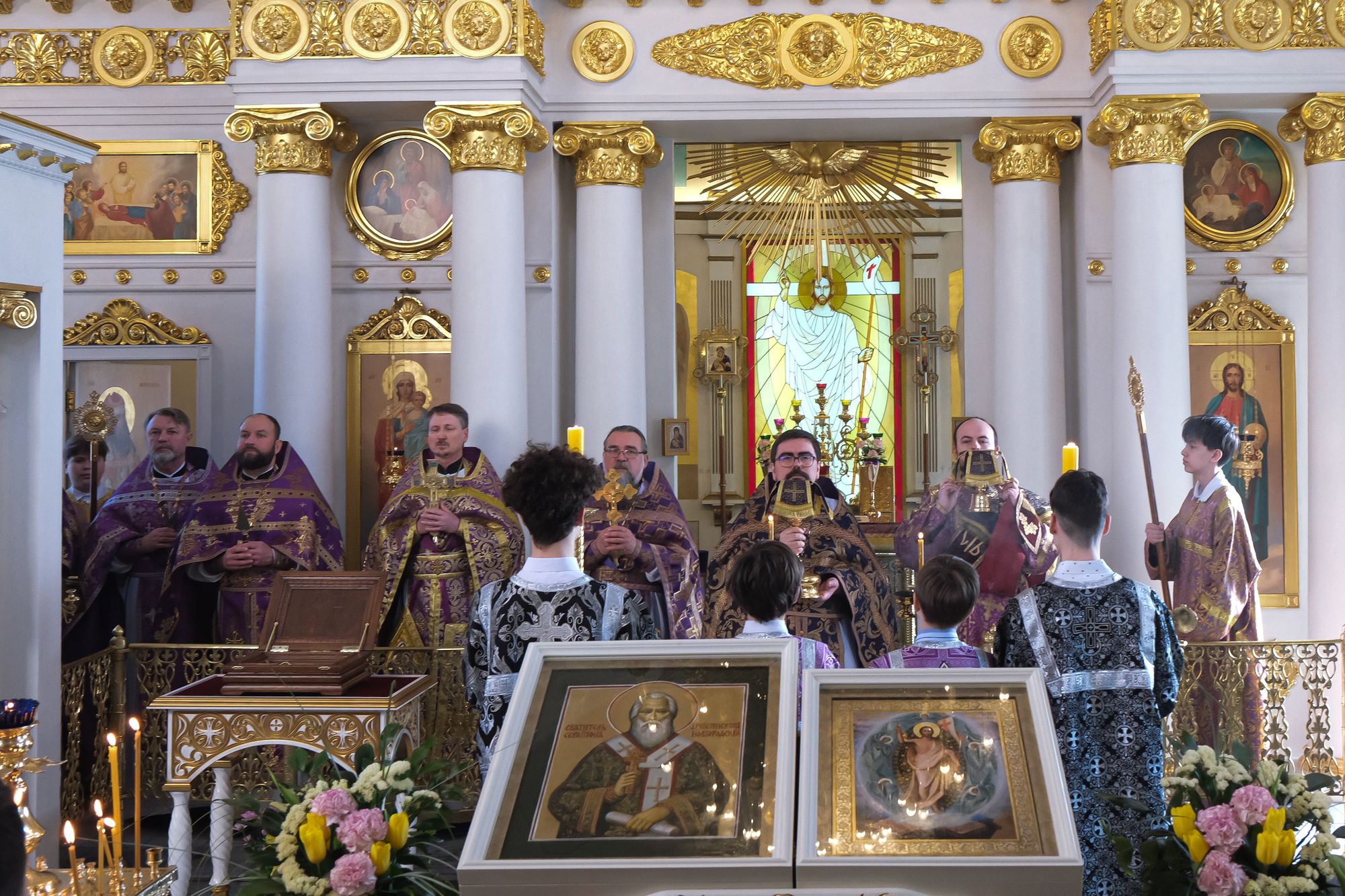 Затем отец благочинный обратился к сослужившему духовенству и молящимся с пастырским словом и поздравил с 510-летием со дня преставления святителя Серапиона.