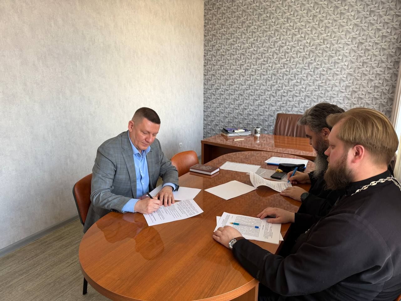Состоялось обсуждение вопросов взаимодействия медицинского учреждения и духовенства, после чего состоялось подписание соглашения о сотрудничестве.