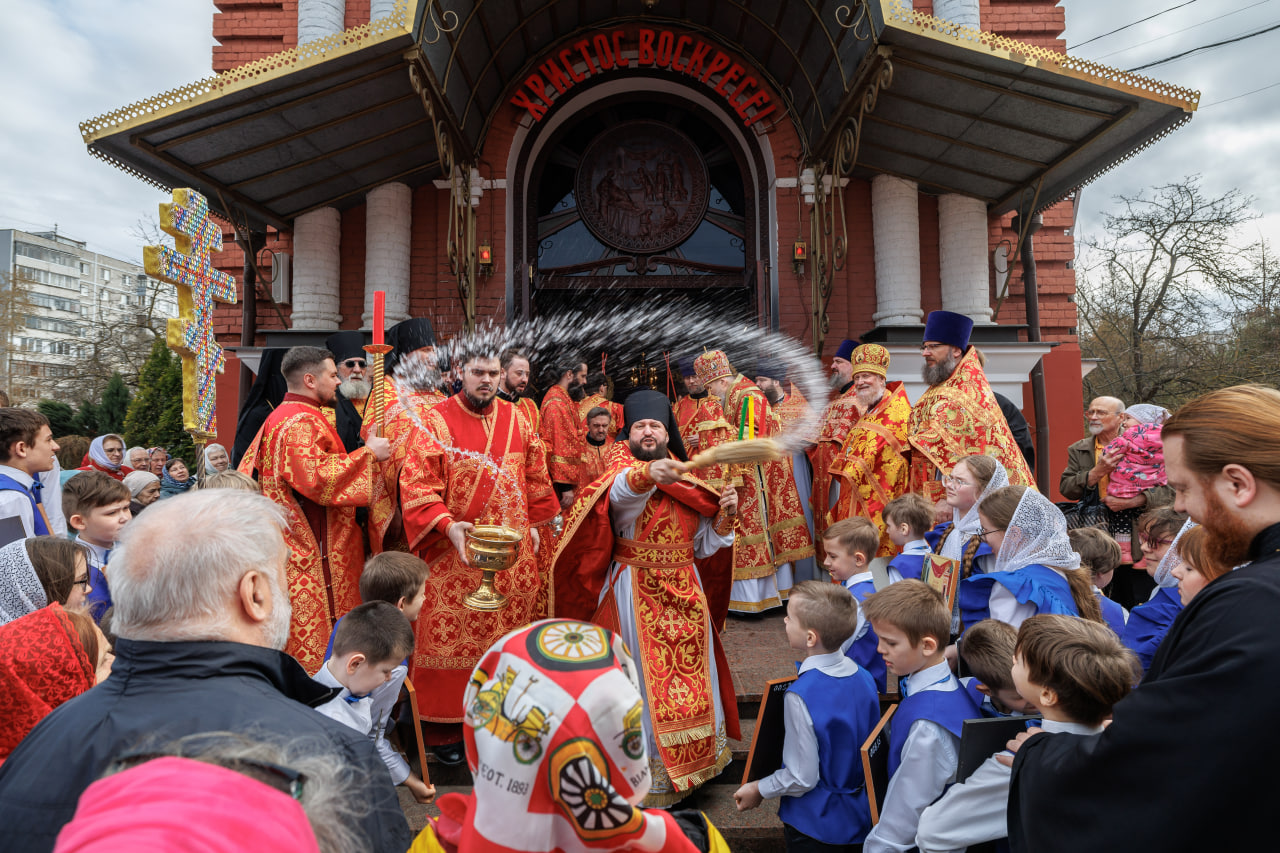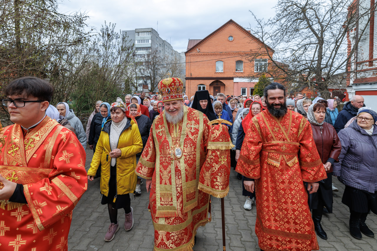 По окончании Литургии был совершён крестный ход, после чего протоиерей Алексий Михаленя зачитал поздравительный адрес владыке Николаю от духовенства епархии с Пасхой Христовой и пятилетием образования Балашихинской епархии.