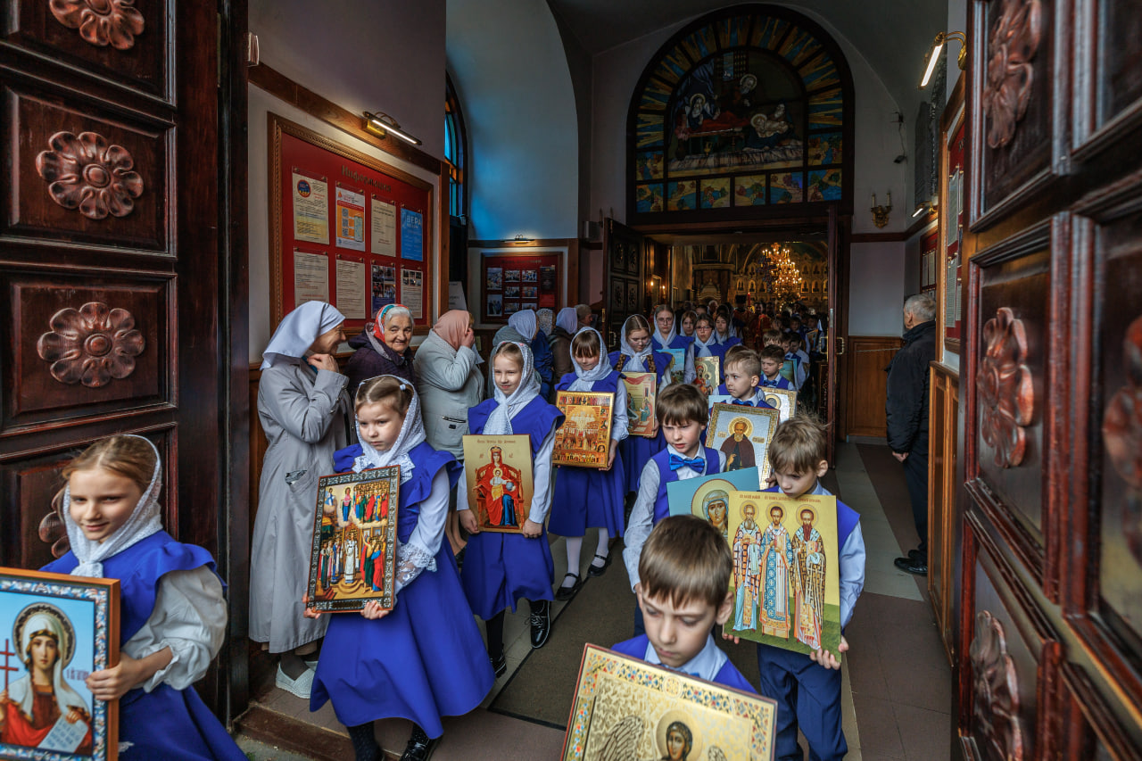 Песнопения исполнили мужской хор собора и детско-юношеский хор благочиния под руководством священника Иоанна Борзых.