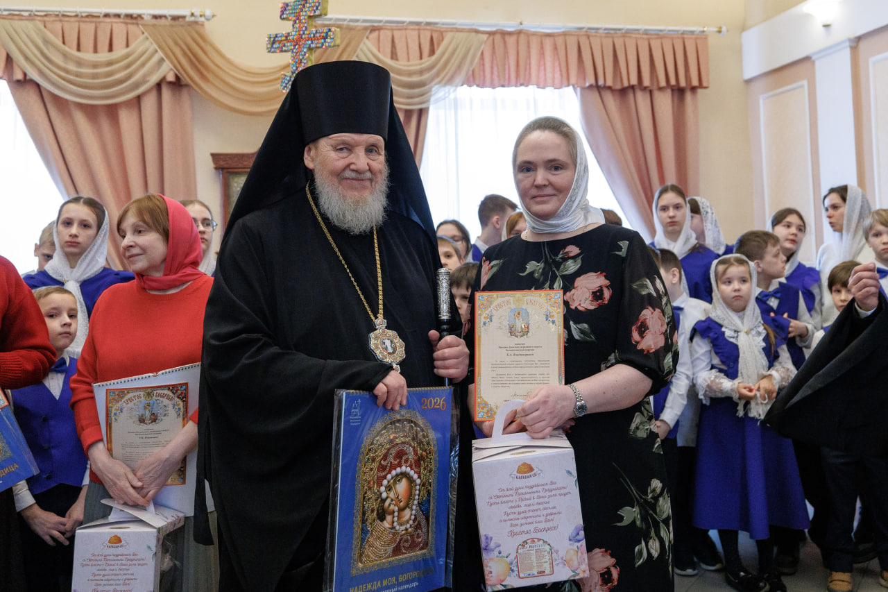 После праздничного концерта Его Преосвященство поздравил со Светлым Христовым Воскресением казначеев благочиний и вручил им грамоты в честь пятилетия епархии.
